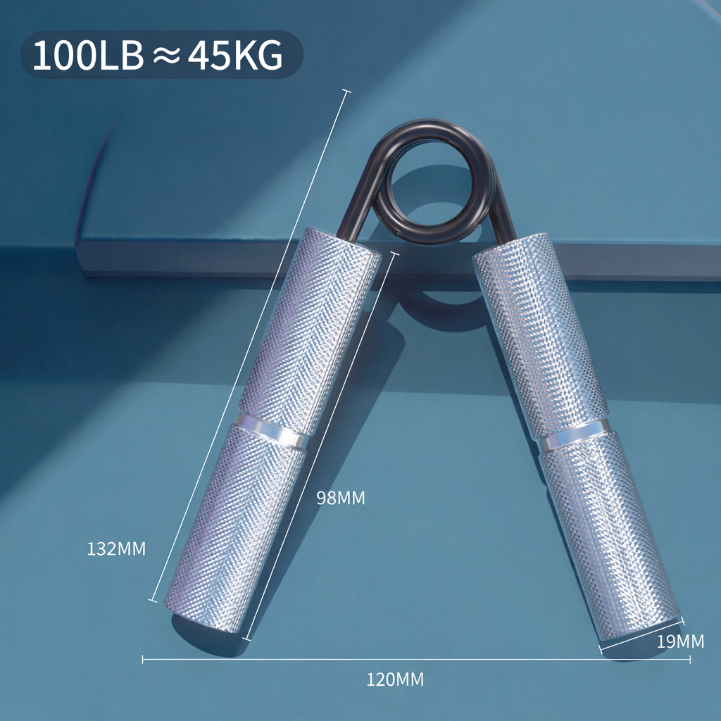 Agarrador de mano diseñado para mejorar la fuerza de agarre y rehabilitar músculos de la mano y el antebrazo. Ideal para usuarios principiantes o con menor fuerza física.