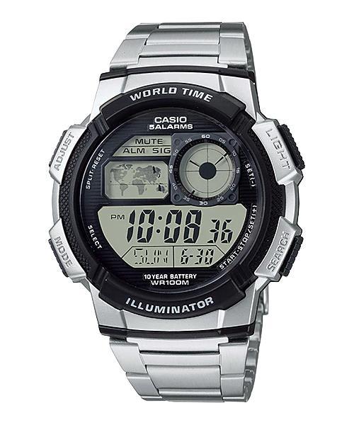 AE-1000WD-1AV Reloj Casio para Hombre Pulsera de Metal Digital Illuminator Hora Mundial 10 Años de Batería