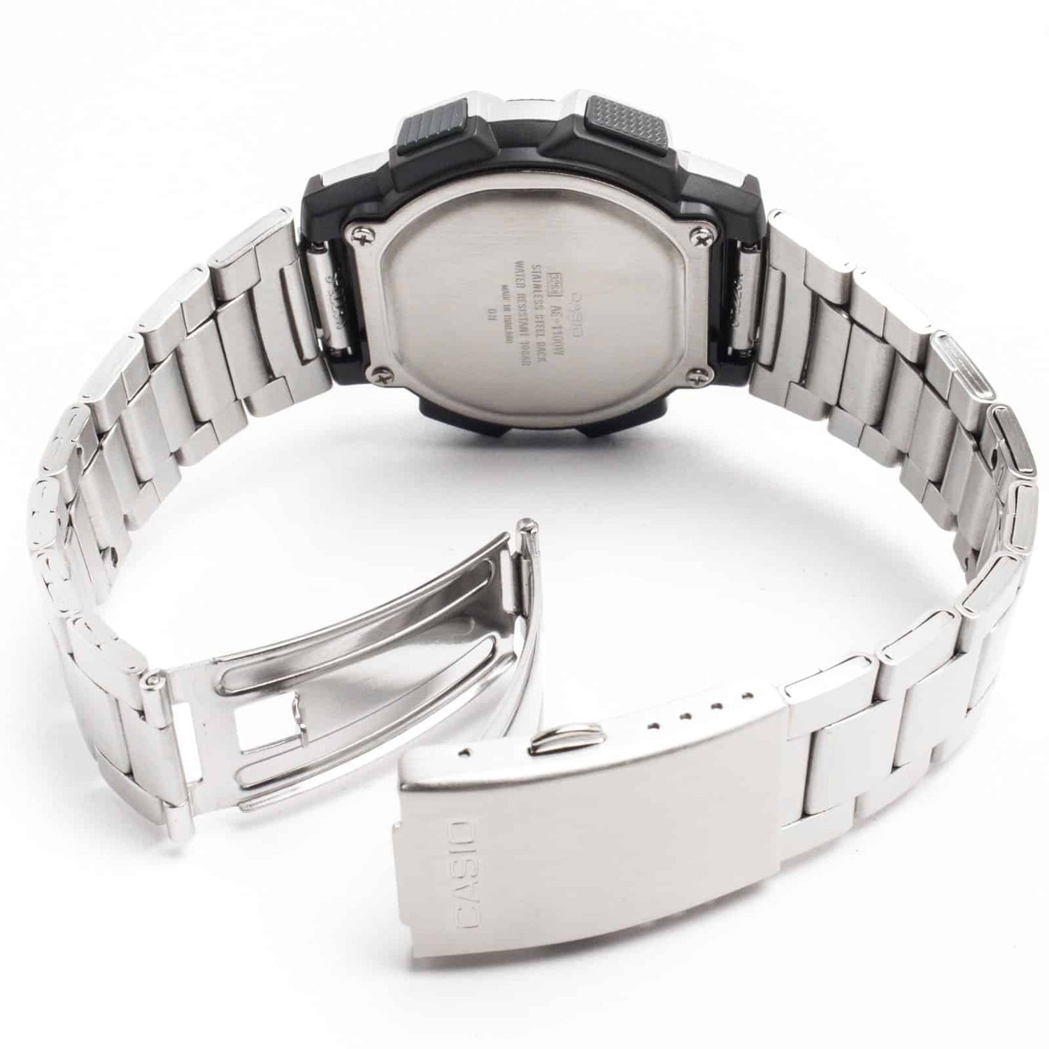 AE-1100WD-1AV Reloj Casio para Hombre Pulsera de Metal Digital Illuminator Hora Mundial 10 Años de Batería