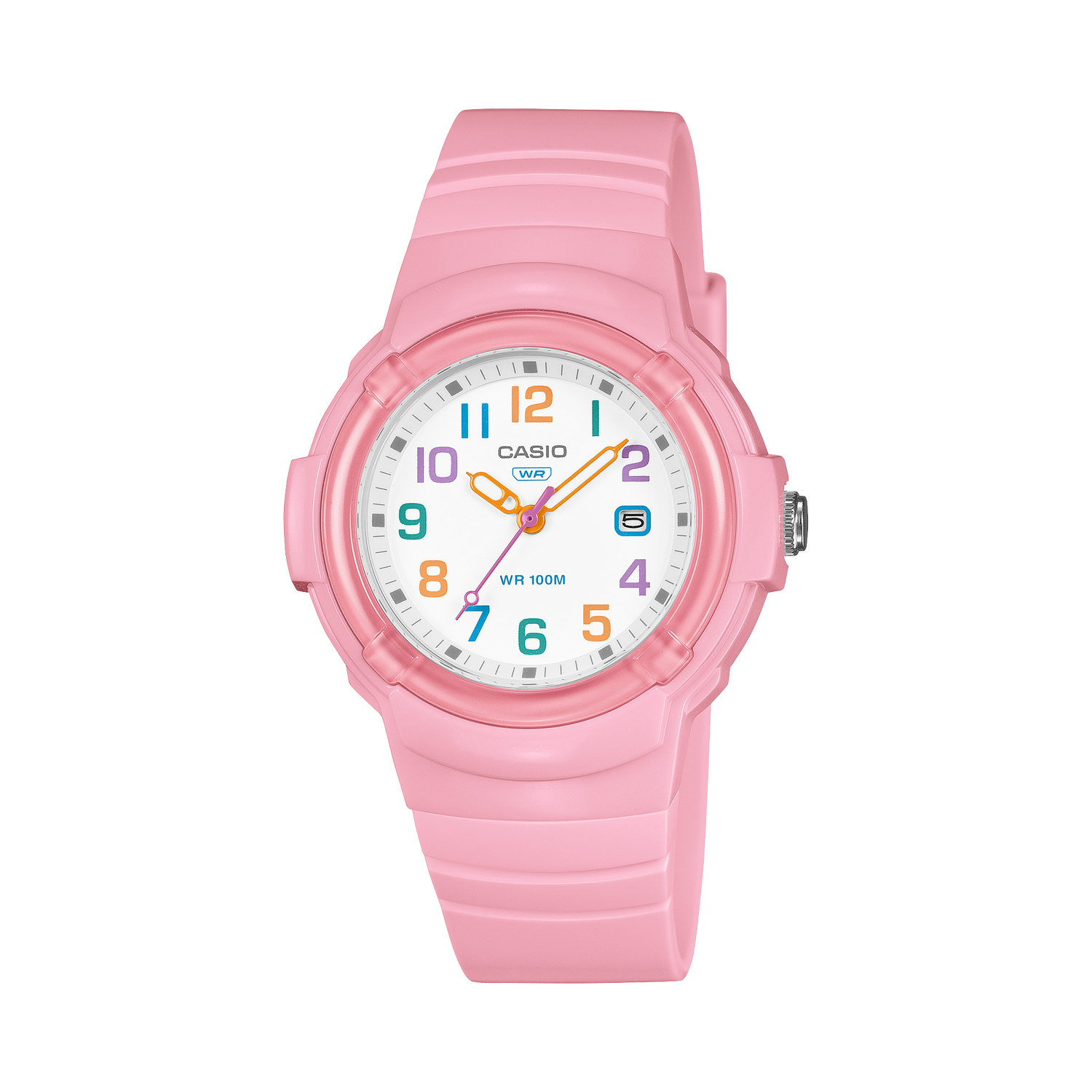 Reloj analógico de diseño colorido y moderno, ligero y cómodo para el uso diario. Ofrece una estética fresca con funciones prácticas, resistencia al agua de 100 metros y correa de resina bio-basada.