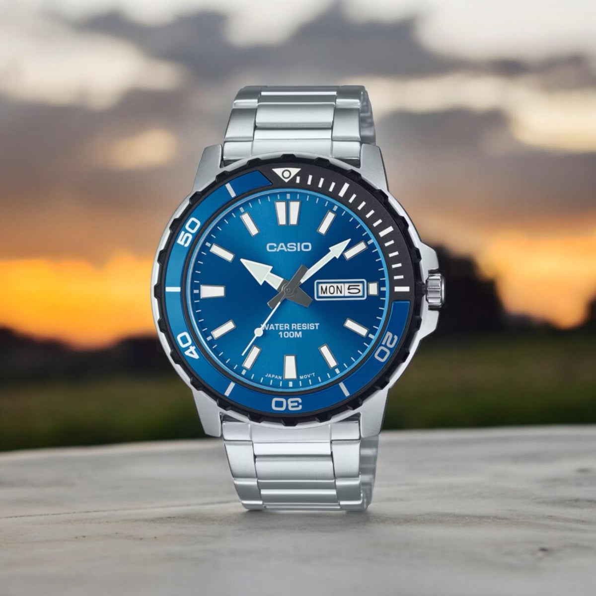 MTD-125D Reloj Casio para Hombre Pulsera de Metal Análogo - Celeste - MTD-125D-2A1V está agotado y se enviará tan pronto como vuelva a estar disponible.