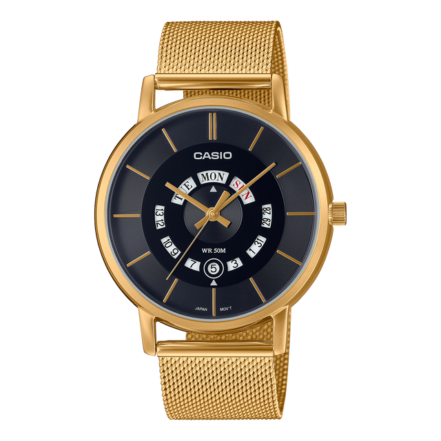 MTP-B130 Reloj Casio de hombre pulsera mesh - Dorado negro - MTP-B135MG-1AV está agotado y se enviará tan pronto como vuelva a estar disponible.