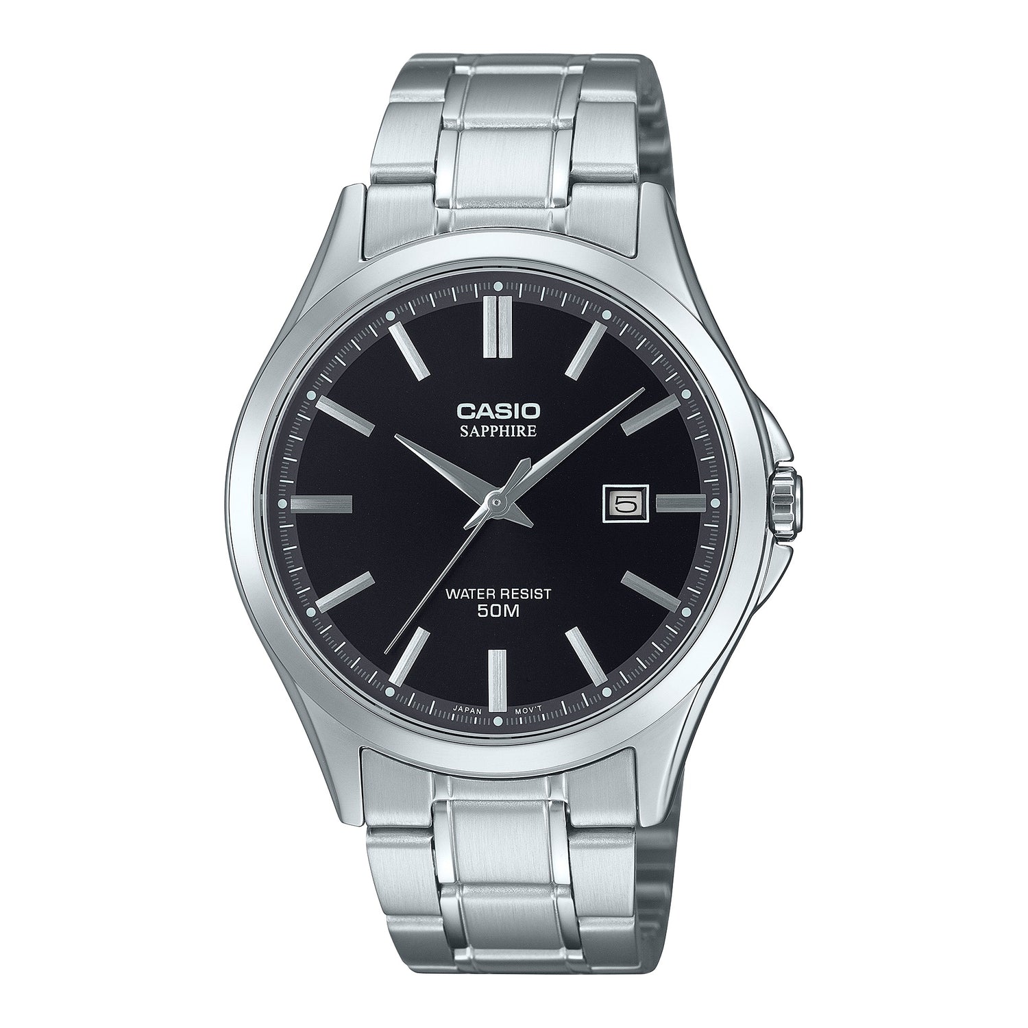 CASIO MTS-115D-1AV Reloj analógico de acero inoxidable con cristal de zafiro