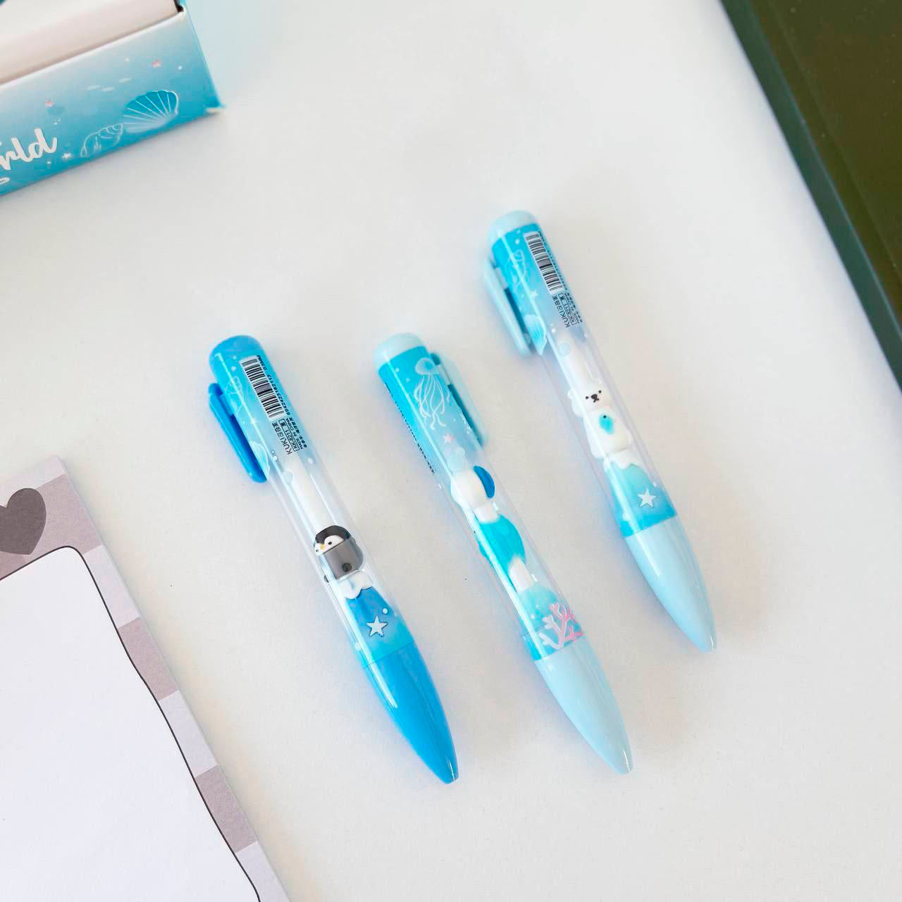Agrega ternura y estilo a tu escritorio con estos encantadores lapiceros de la colección KUKI Ocean World. Cada bolígrafo tiene un adorable diseño inspirado en el océano, con figuras de ositos y animales marinos que alegrarán tu día mientras escribes.