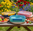 AQX-2560B Lonchera elegante de plástico con tres compartimientos y un recipiente redondo