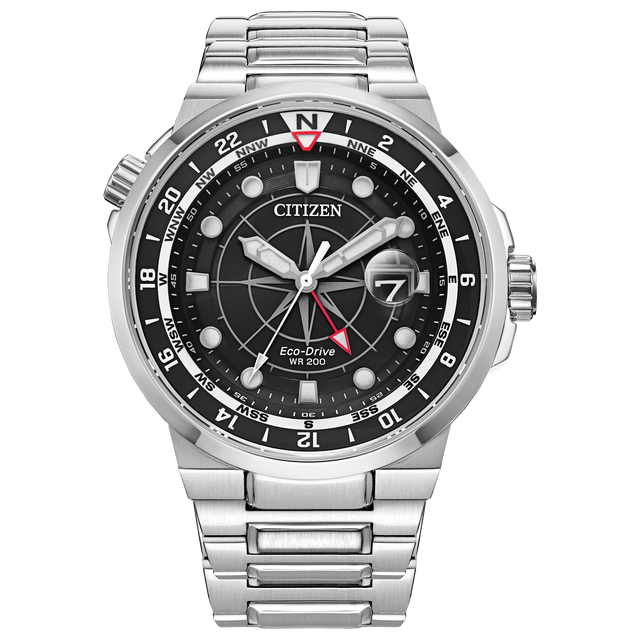 Aventúrate con la colección Sport Luxury y alcanza un nuevo nivel de estilo y funcionalidad con el reloj Citizen Endeavor BJ7140-53E. Su diseño combina una caja y brazalete de acero inoxidable con una carátula negra inspirada en la estrella de navegación. Incorpora funciones avanzadas como brújula en el anillo giratorio interno, segunda zona horaria y fechador con lupa. Su cristal de zafiro antirreflejante, manecillas luminiscentes y resistencia al agua de 200 metros lo convierten en un reloj confiable y elegante para cualquier ocasión.