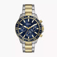 Un reloj BANNON de 45 mm con movimiento multifunción y correa de acero inoxidable bicolor (oro y plata).