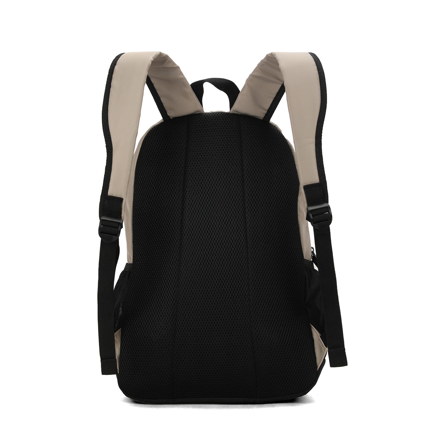 - Respaldo fabricado con un acolchado de malla de 3 capas con orificios de aire, diseñado para mejorar el flujo de aire entre la mochila y la espalda, manteniéndola seca y cómoda.