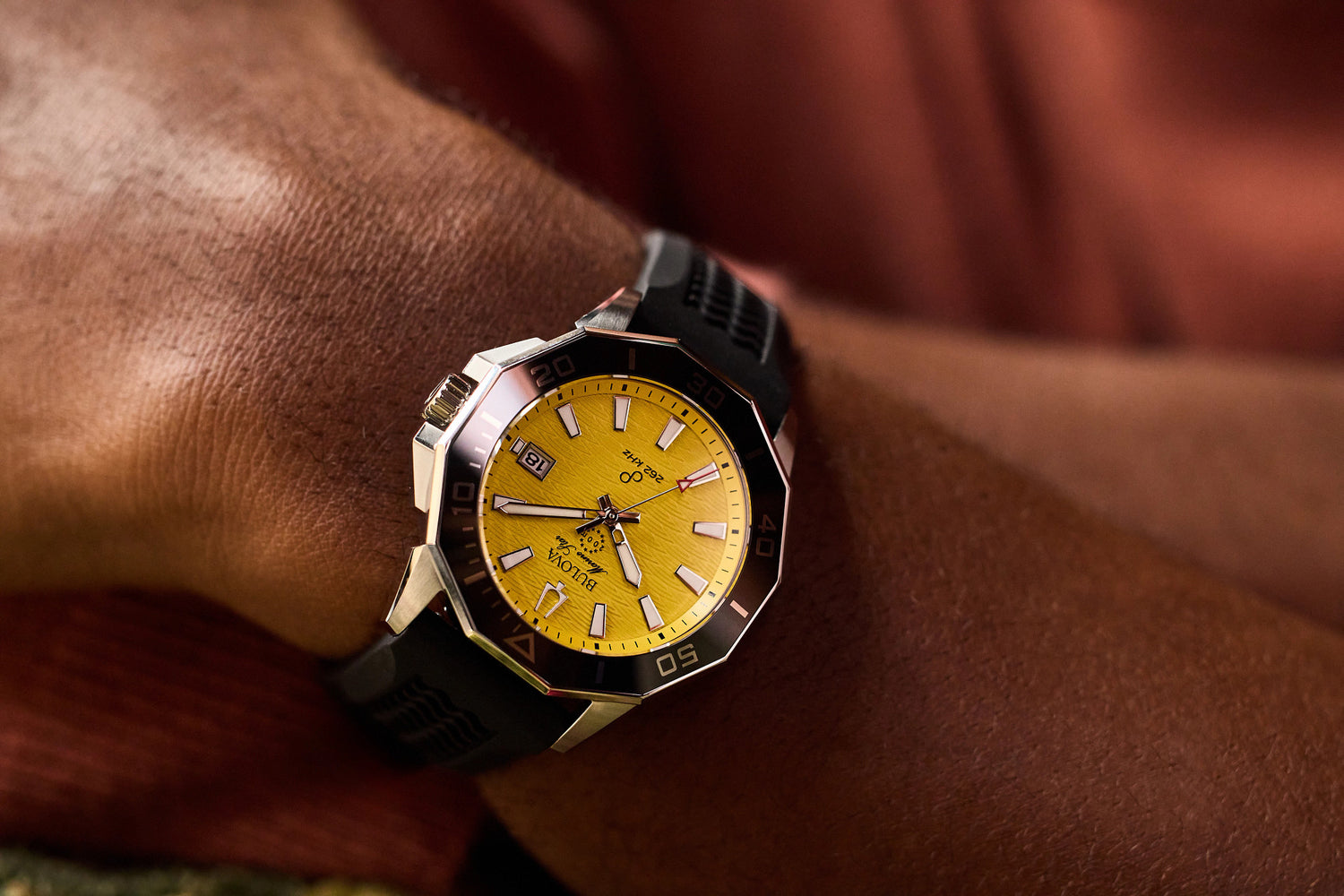 El Bulova Marine Star Precisionist 96B431 combina diseño deportivo, construcción robusta y una de las tecnologías de cuarzo más precisas del mundo. Su caja angular de acero inoxidable, la carátula amarilla inspirada en las olas del océano y el segundero de barrido continuo lo convierten en un reloj imponente y altamente funcional. Cuenta con movimiento Precisionist de alta frecuencia (262 kHz), una precisión extraordinaria y un desempeño superior incluso ante variaciones de temperatura. Equipado con cristal de zafiro, bisel unidireccional y una resistencia al agua de 200 metros, es un modelo ideal tanto para el uso diario como para aventuras en el agua.