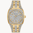 Reloj Bulova para hombre con diseño opulento y elegante, caja tipo cojín y un total de 582 cristales Swarovski aplicados en bisel, pulsera y esfera. Un reloj de alto impacto visual, perfecto para ocasiones especiales.