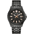 Reloj Bulova para hombre con caja de acero inoxidable negro de 42 mm, correa de acero a juego y esfera negra con textura de onda oceánica.
