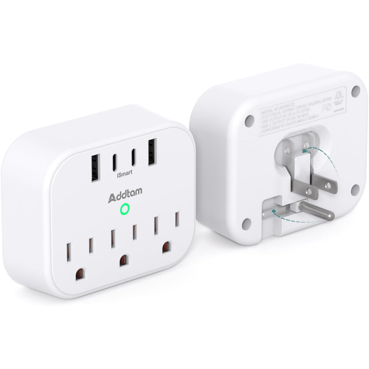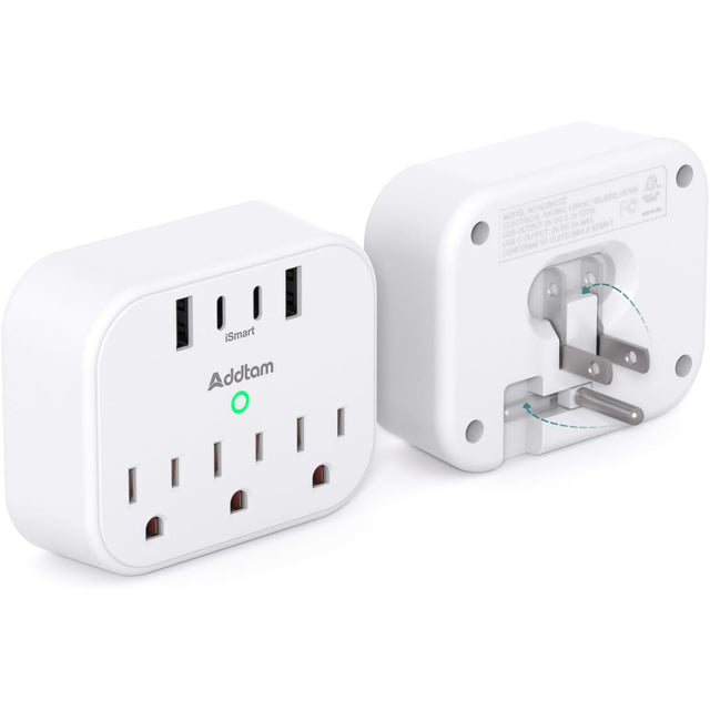 AD3WC2Z Addtam Tira de alimentación protector de sobretensión, extensor de salida de viaje con 3 tomacorrientes, 4 USB (2 USB-C)