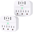 - Extensor de salida multifunción: este extensor de enchufe de pared con 3 salidas de CA (15A/125V/1875W) y 4 puertos USB inteligentes de alimentación para teléfonos celulares, portátiles, cámaras y muchos otros dispositivos. Con protector de sobretensiones integrado (490J), puede garantizar que tus preciosos dispositivos estén bajo protección.