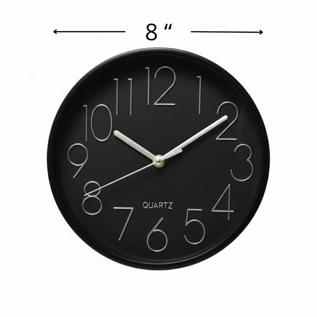 Reloj de pared análogo varios tamaños color negro - 8 Pulgadas está agotado y se enviará tan pronto como vuelva a estar disponible.