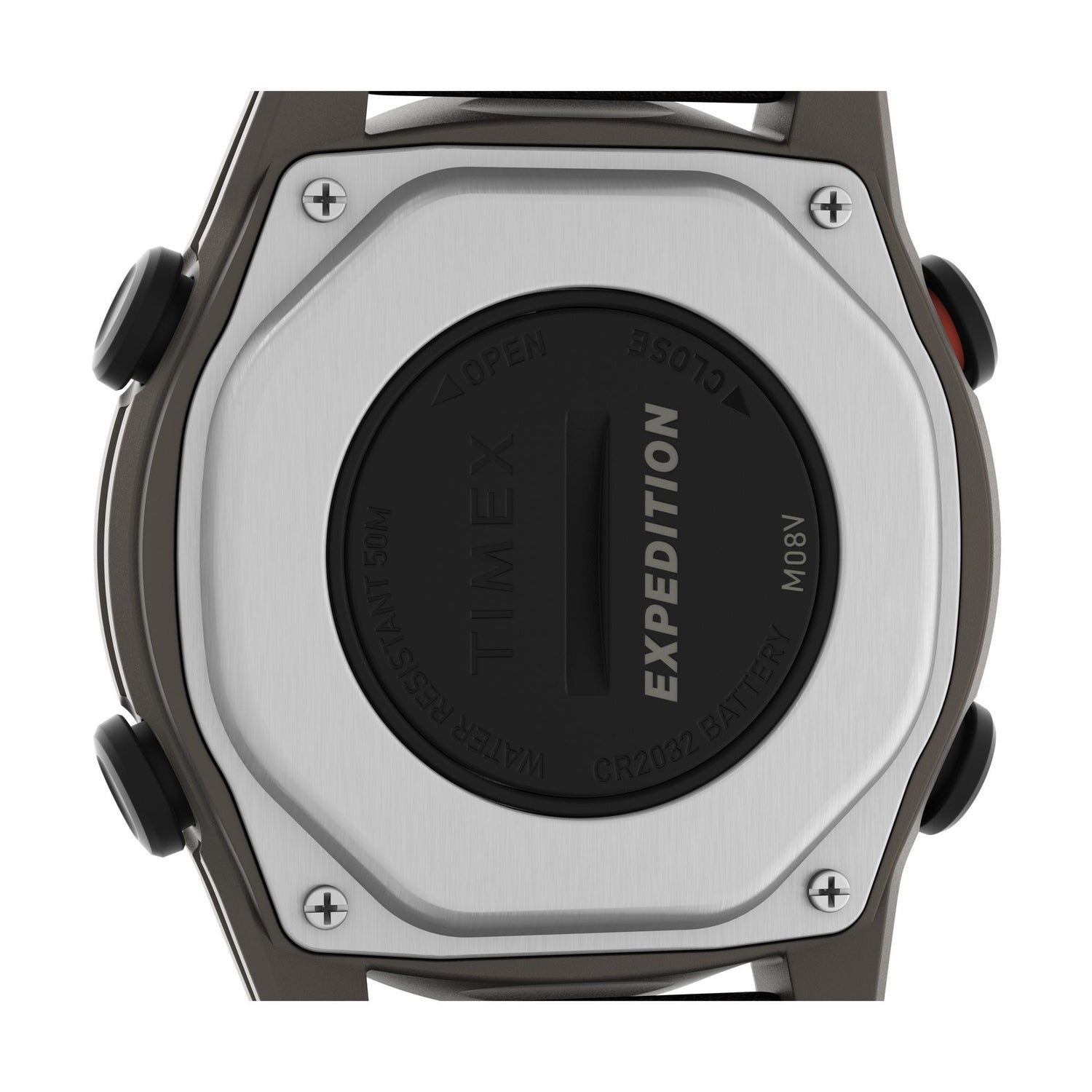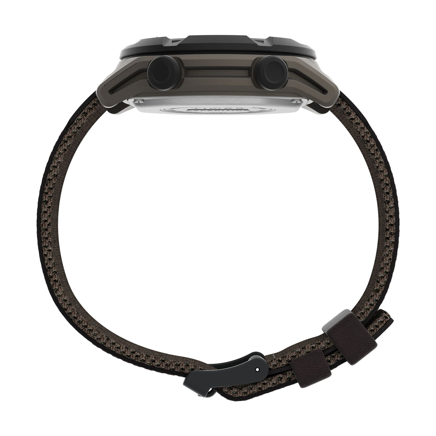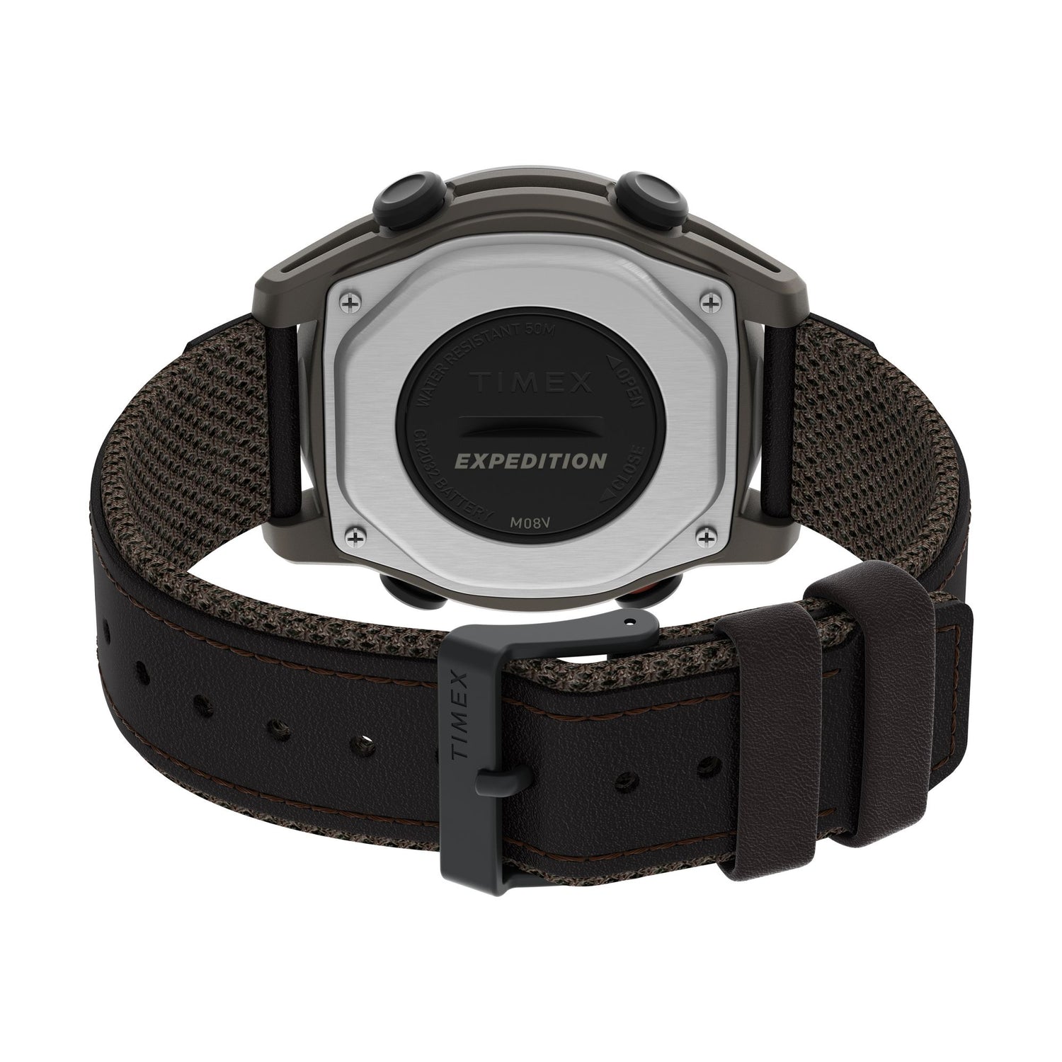 - Descripción: Rastreador de actividad y frecuencia cardíaca Expedition Trailblazer+ con caja de resina marrón mate con detalles rojos de 43mm, correa mixta de cuero y tela marrón, esfera digital e iluminación Indiglo®.