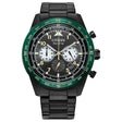 Reloj Citizen Weekender/Sport Casual con diseño totalmente negro ion-plated, cronógrafo multifunción y movimiento Eco-Drive que se alimenta de la luz. Su estilo deportivo y moderno lo convierte en una pieza versátil para uso diario.