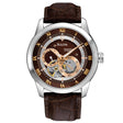 El Bulova 96A120 es un elegante reloj mecánico automático con doble ventana abierta en la esfera que permite apreciar el movimiento interno de 21 joyas. Su diseño combina acero inoxidable, detalles en oro rosa y una correa de piel marrón, logrando una estética clásica, refinada y con carácter.