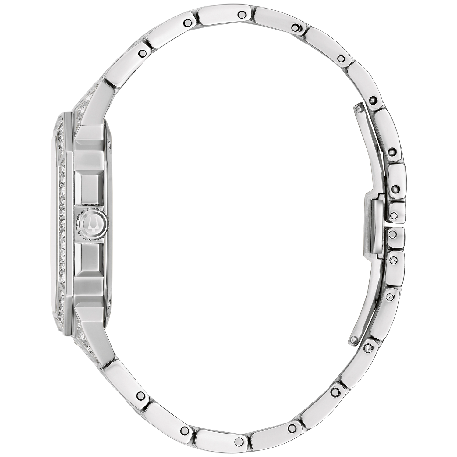 El Bulova Octava 96A285 presenta un diseño geométrico distintivo con caja octagonal y detalles de cristales tanto en el bisel como en el brazalete. Su estética moderna y elegante lo convierte en un reloj llamativo, ideal para quienes buscan un estilo sofisticado y contemporáneo.