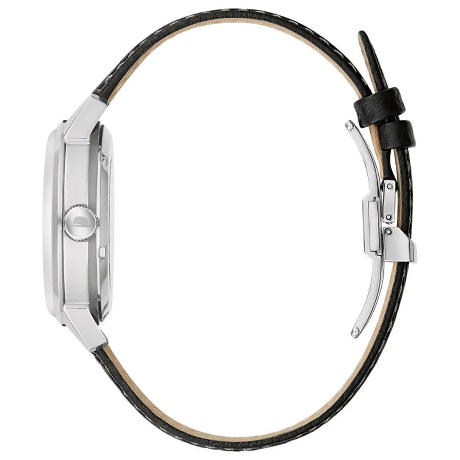 - Descripción: Reloj automático para hombre con caja plateada de 40 mm, correa de cuero genuino negro y esfera negra. Incluye movimiento automático y fondo de caja transparente.