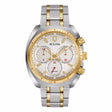 El Bulova Curv 98A157 destaca por incorporar el primer movimiento cronógrafo curvado del mundo, ofreciendo comodidad superior y precisión excepcional. Su diseño bicolor en acero inoxidable, cristal de zafiro curvado y carátula plateada con acentos rojos crean una pieza moderna, elegante y tecnológica.