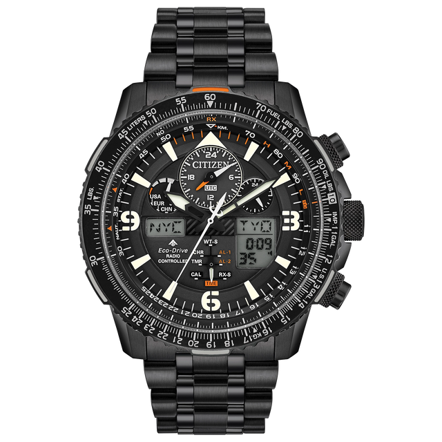 Reloj de aviación de alto rendimiento con tecnología Eco-Drive y sincronización atómica, diseñado para máxima precisión, funcionalidad avanzada y resistencia profesional.