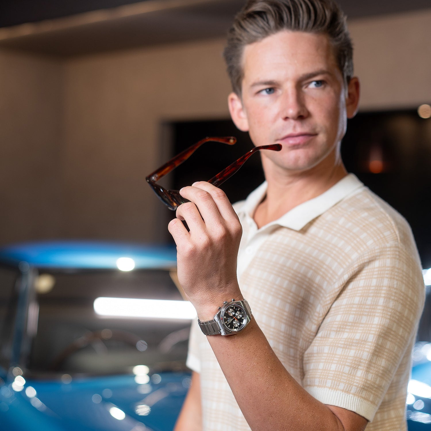 - Funciones clásicas: Analógica con 3 manecillas (hora, minuto, segundo) y 3 subesferas (24 horas, minutos del cronómetro, segundos del cronómetro)