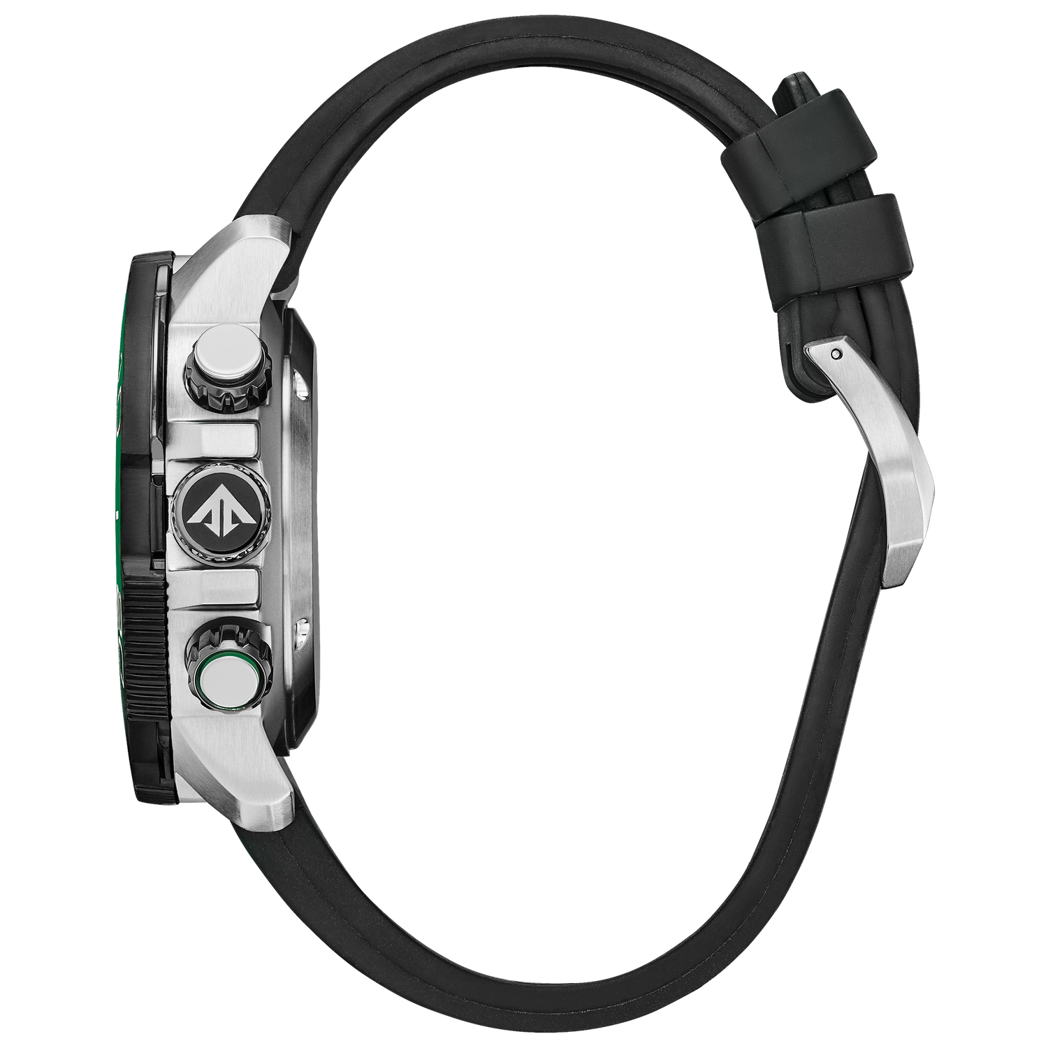 - Funciones: Cronógrafo de 1 segundo (hasta 50 minutos), display de profundidad hasta 50 metros, auto start dive mode, memoria de profundidad máxima, formato 12/24 h, indicador de reserva de carga, fecha