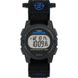 - Descripción: Reloj Timex Expedition® de tamaño mediano con caja de resina negra, correa Fastwrap® de nailon negro con cierre de velcro, pantalla digital con funciones de cronógrafo, alarma y temporizador, e iluminación Indiglo®; resistencia al agua de 100 metros.