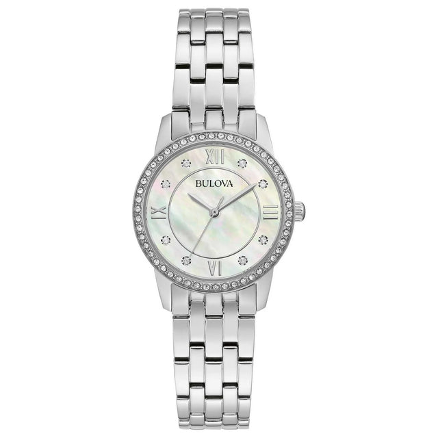 96X155 Reloj Bulova Crystal de dama pulsera de metal 27 mm