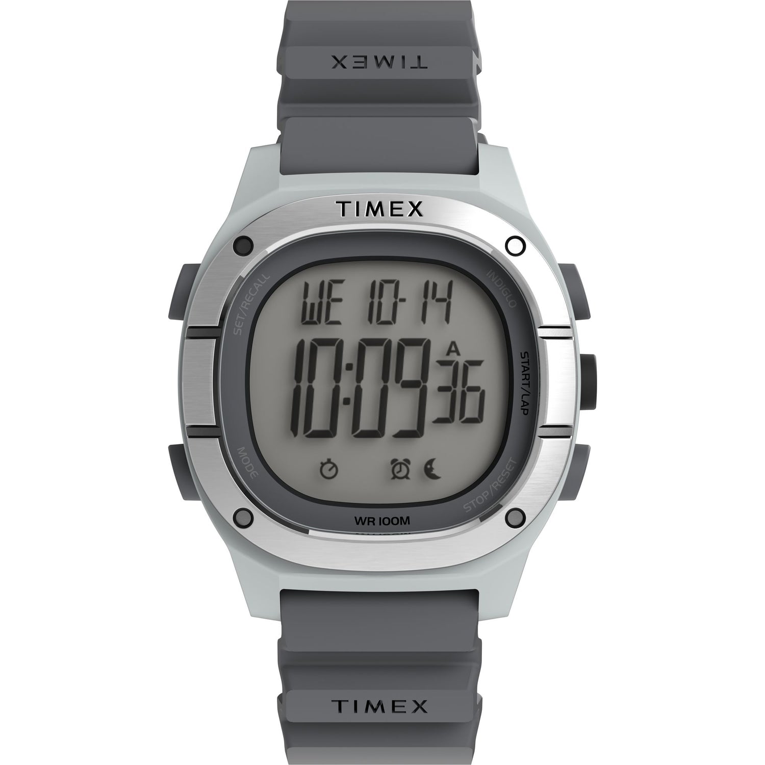 - Descripción: Reloj digital Command LT con caja cuadrada de resina gris mate de 40mm, correa de silicona gris, esfera digital e iluminación Indiglo®.