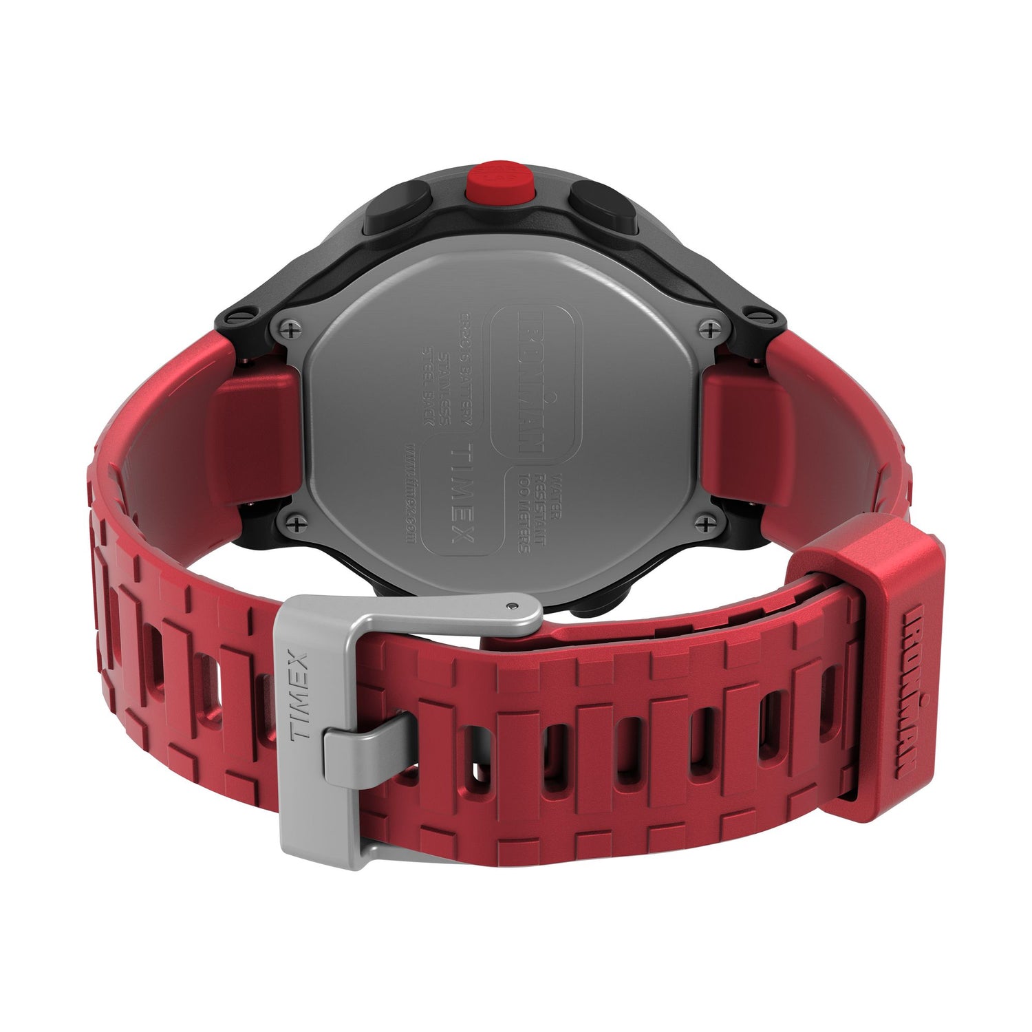 - Descripción: Reloj digital Ironman T200 con caja de resina negra con detalles rojos de 42mm, correa de silicona roja de dos piezas, esfera digital e iluminación Indiglo®.