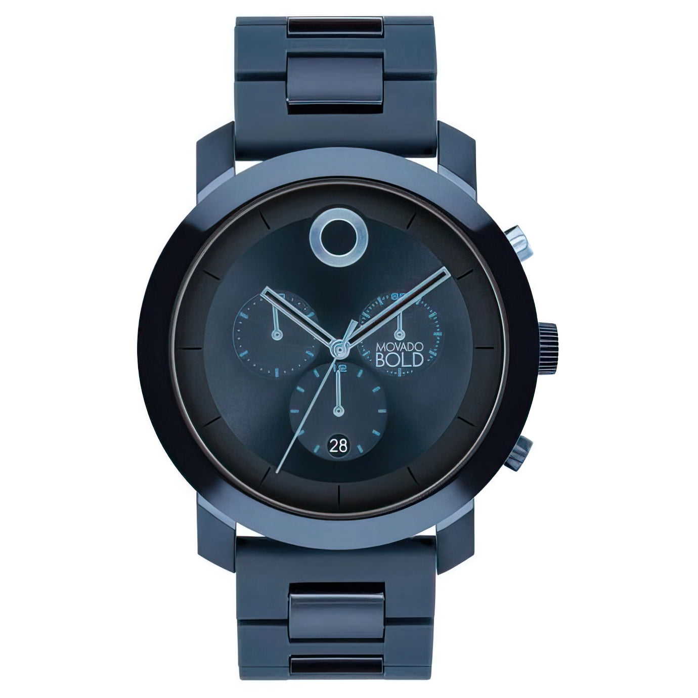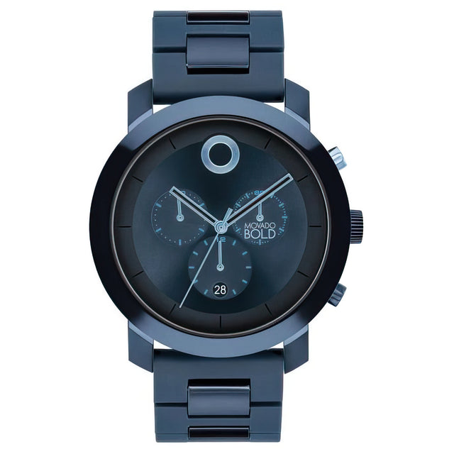 Reloj Movado Trend Impulse con un diseño ultramoderno y deportivo. Su combinación de materiales avanzados en TR90 azul y acero inoxidable con recubrimiento iónico crea una apariencia dinámica y contemporánea. La carátula azul oscuro y la pulsera azul completan un estilo audaz y sofisticado.