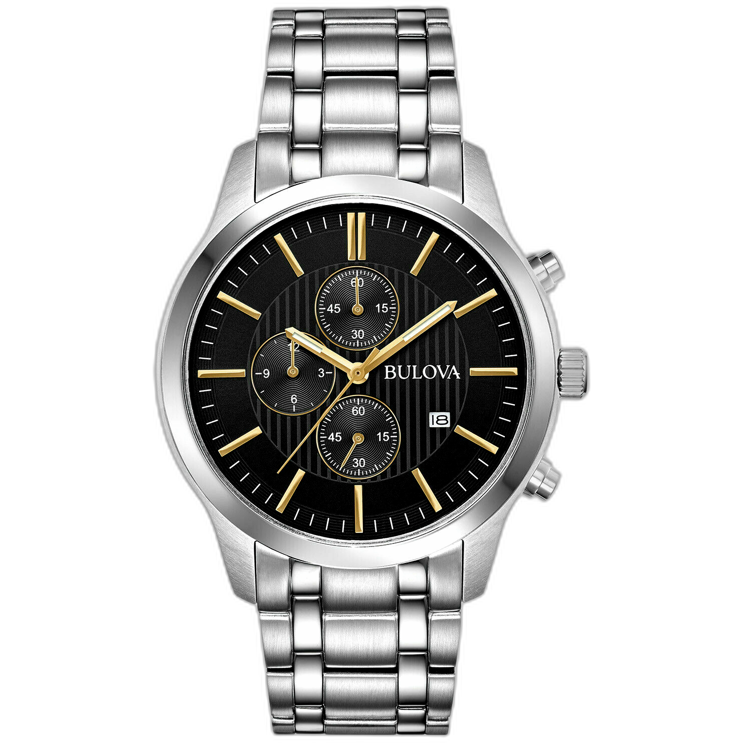 El Bulova 96B305 es un reloj cronógrafo para hombre con un diseño versátil y elegante, combinando una carátula negra de excelente legibilidad con un brazalete de acero inoxidable. Su estilo deportivo-formal lo convierte en una pieza adecuada para uso diario o vestir.