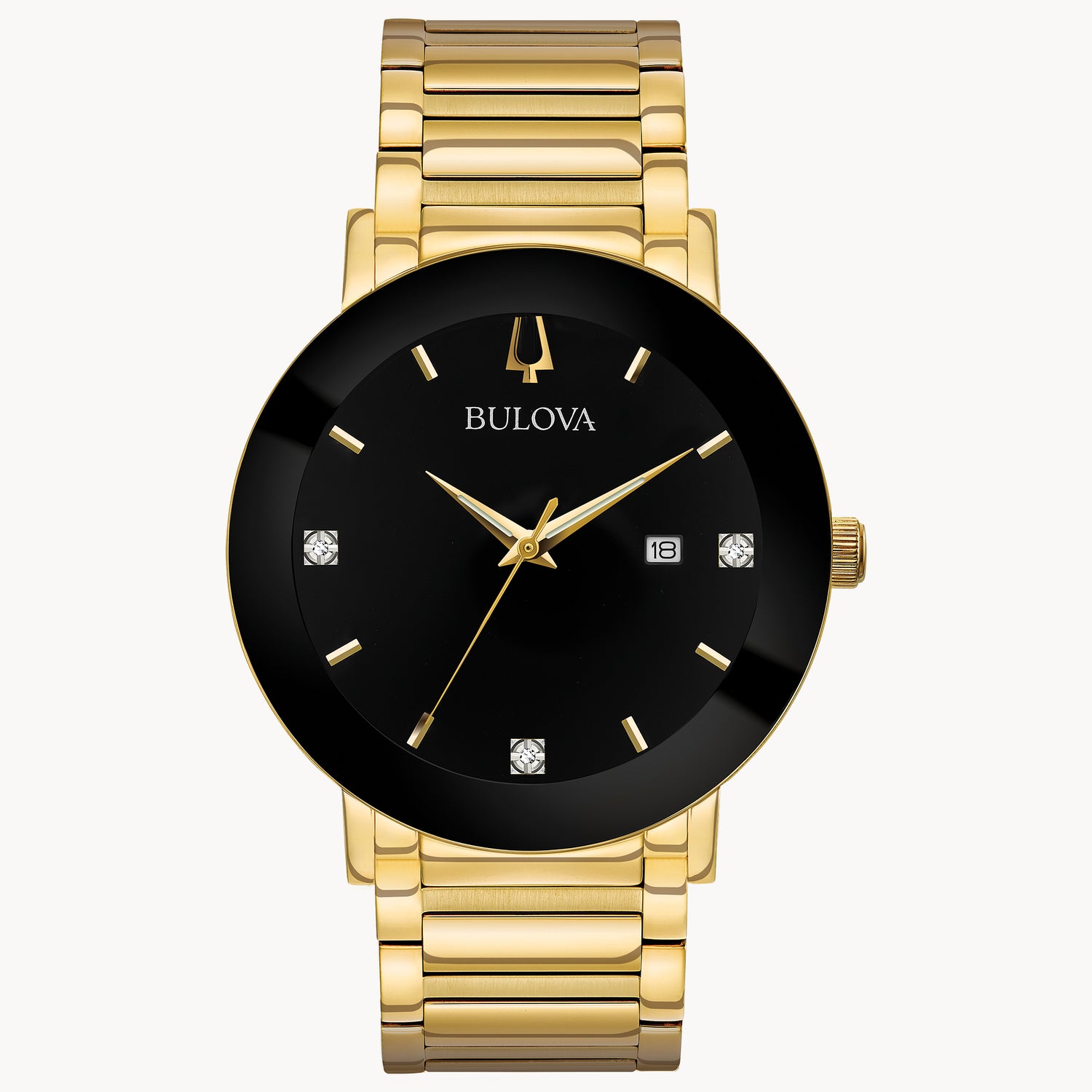 El Bulova Modern 97D116 destaca por su diseño minimalista y elegante, caracterizado por líneas limpias, acabado dorado y detalles sofisticados. Sus 3 diamantes montados a mano en la carátula y el cristal mineral metalizado de borde a borde le otorgan una estética contemporánea y lujosa.