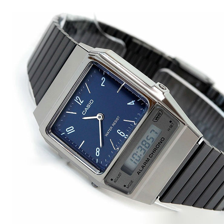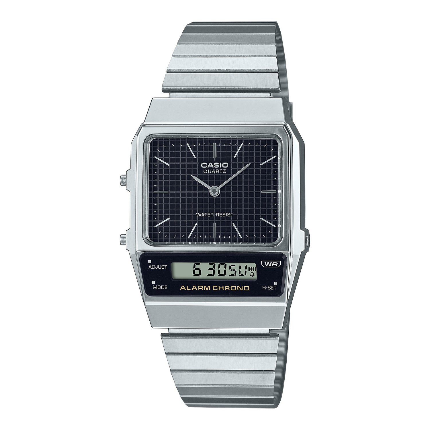 AQ-800 Reloj Casio para Hombre, Mujer Pulsera de Metal Doble hora Vintage Clásico