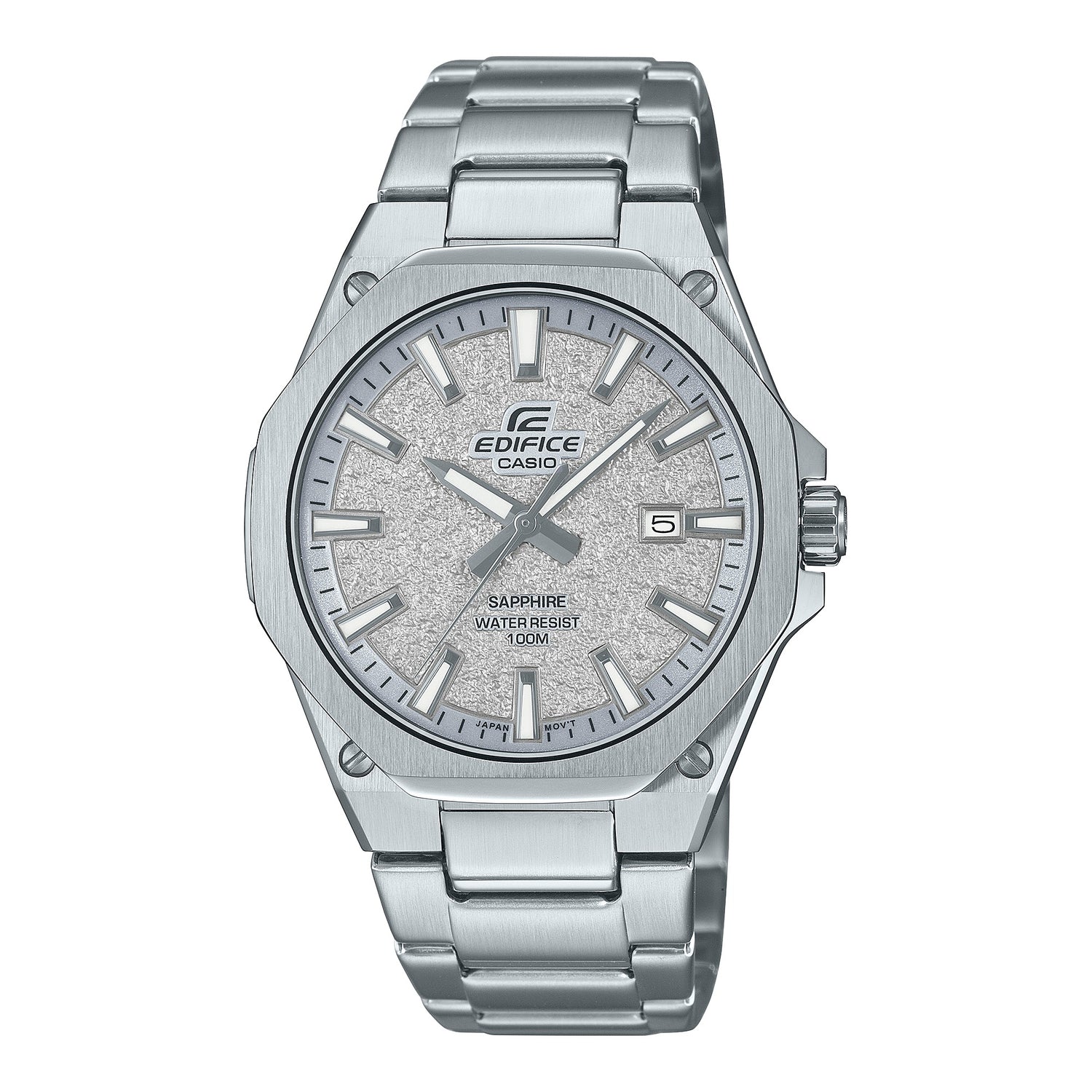 - Descripción: Reloj analógico de la serie Edifice con diseño delgado y elegante, fabricado completamente en acero inoxidable y protegido por cristal de zafiro resistente a rayaduras. Su esfera gris metalizada ofrece una apariencia moderna y sofisticada. Resistente al agua hasta 10 bares, combina estilo profesional con funcionalidad precisa para el uso diario.