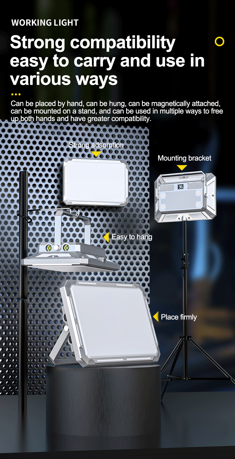 - Puede colocarse sobre superficies planas, colgarse, fijarse magnéticamente o montarse en trípode