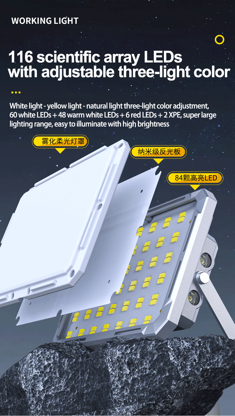 - 116 LEDs: 60 blancos, 48 cálidos, 6 rojos y 2 XPE para una iluminación potente y versátil