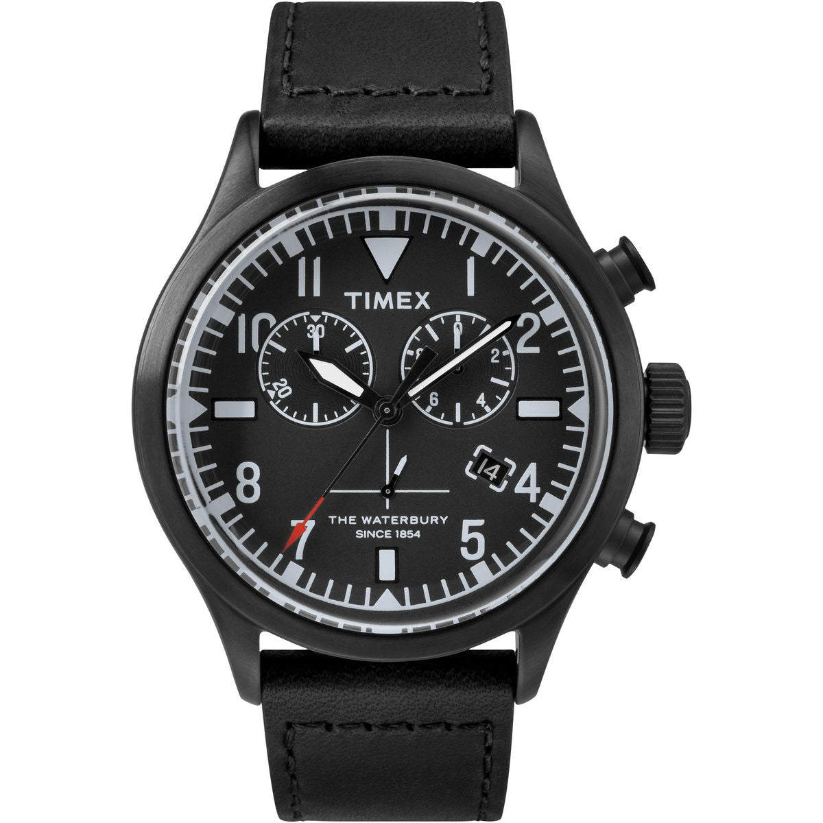 - Descripción: Cronógrafo Waterbury con caja y esfera negra