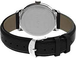 - Descripción: Caja plateada con esfera blanca y correa negra de cuero