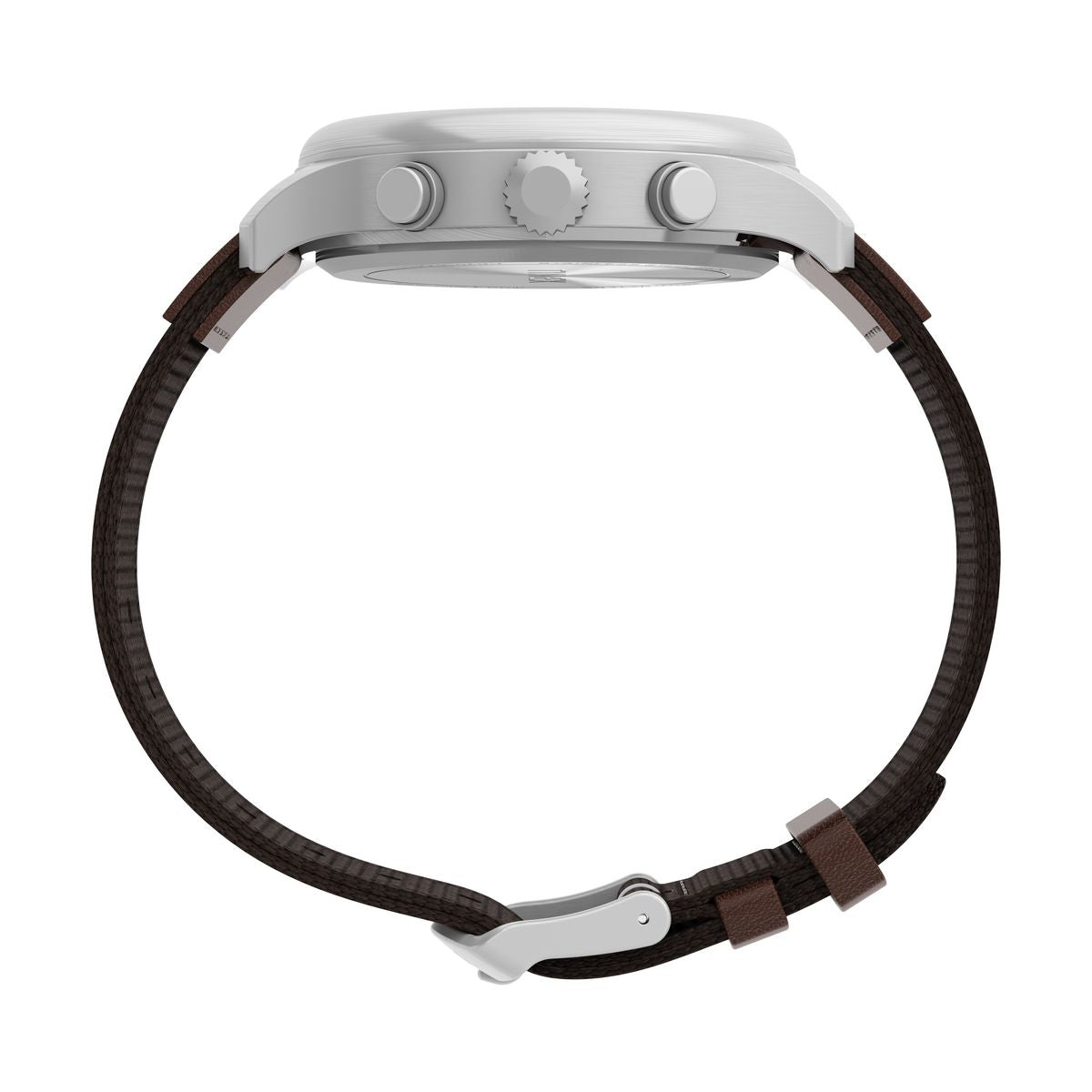 - Descripción: Reloj Timex Expedition Field Chronograph de 43 mm con caja plateada cepillada, esfera negra y correa de tela marrón con refuerzo de cuero.