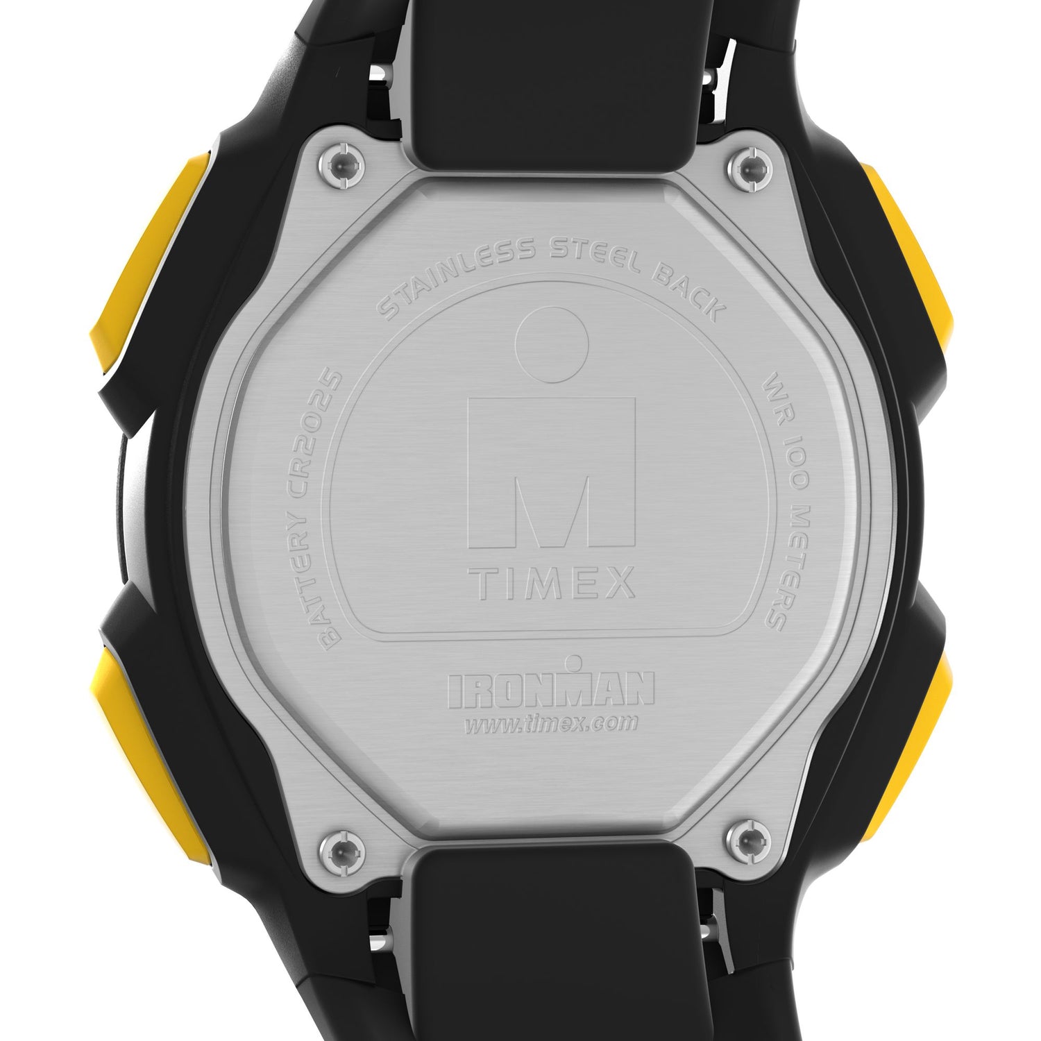 - Descripción: Reloj digital Ironman Classic 30 con caja de resina negra con detalles amarillos de 40mm, correa de resina negra, esfera digital con acentos rojos y amarillos, e iluminación Indiglo®.