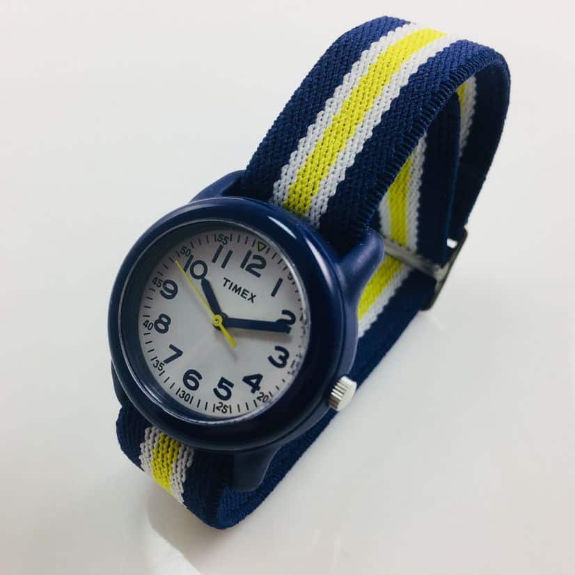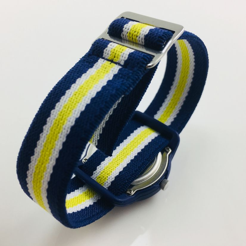 TIMEX TIME MACHINES® 29mm Blue/Yellow Stripe Elastic Fabric Kids Watch – TW7C05800