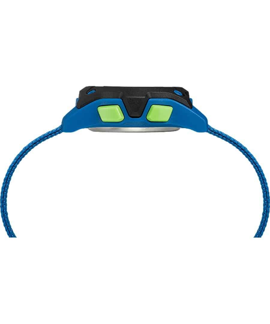 - Descripción: Reloj juvenil digital con caja de resina azul de 35 mm, detalles en verde y negro, correa de tela de doble capa con hebilla y pantalla digital con luz Indiglo®. Un diseño resistente y divertido para los más jóvenes.