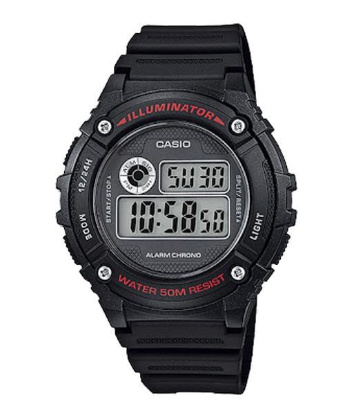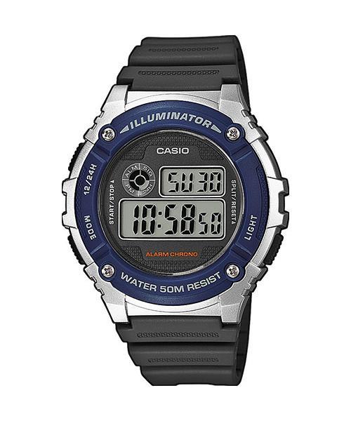 W-216 Reloj Casio para Hombre Banda de Caucho Digital Illuminator con Cronógrafo